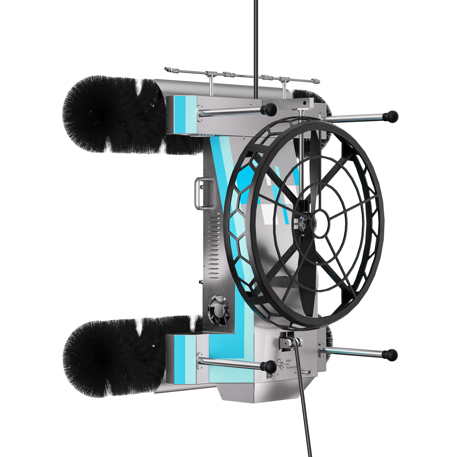 采用滚轮滚刷式设计,清洗滚轮的软纤维可清洁大多数胶条、缝隙、窗台死角等;双喷淋系统,根据需要一键切换清洁剂喷雾和高压水帘,较其他机器人清洁深度更高,清洁效果更好。
